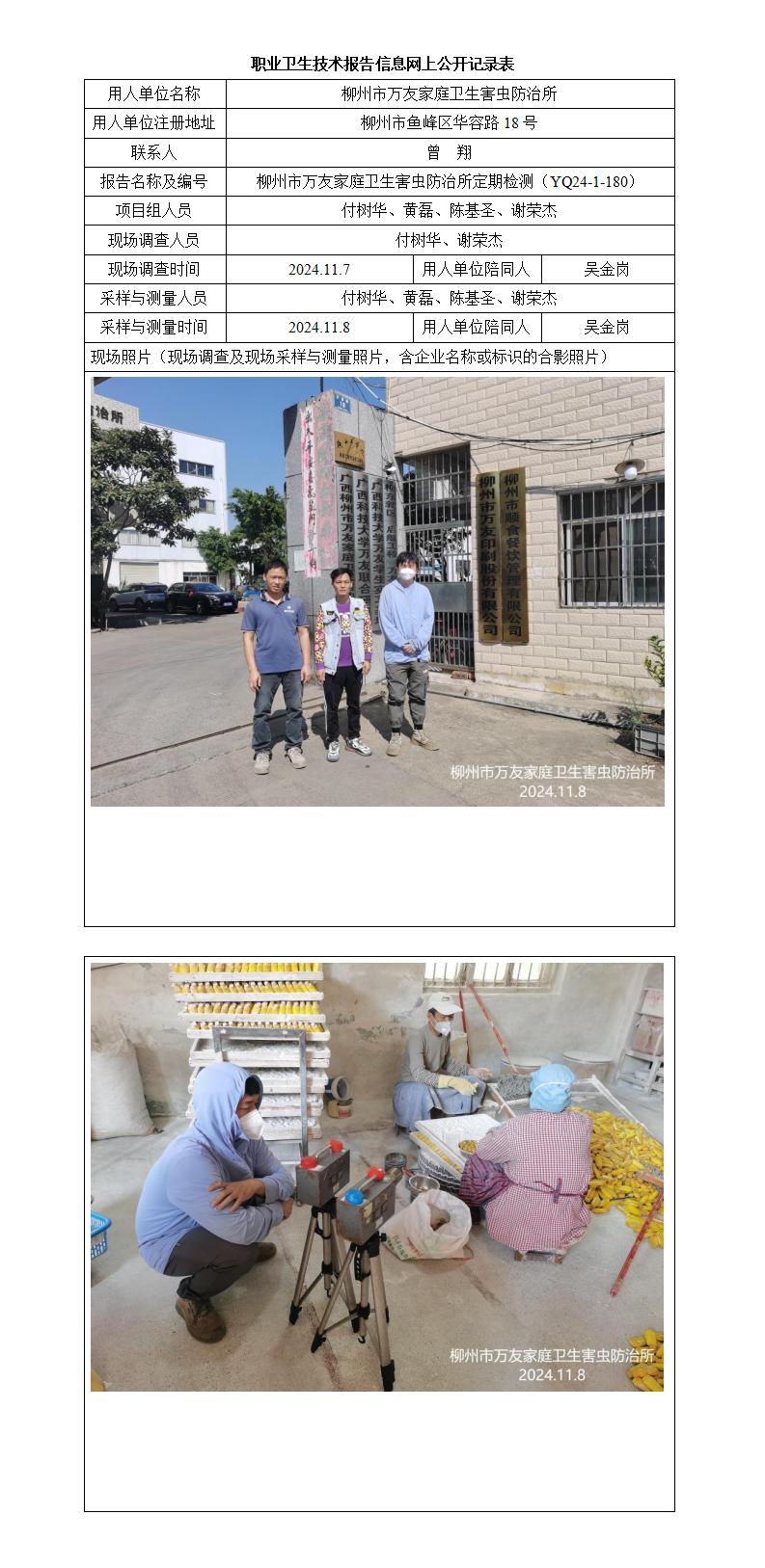 柳州市萬(wàn)友家庭衛(wèi)生害蟲防治所工作場(chǎng)所職業(yè)病危害因素定期檢測(cè)報(bào)告