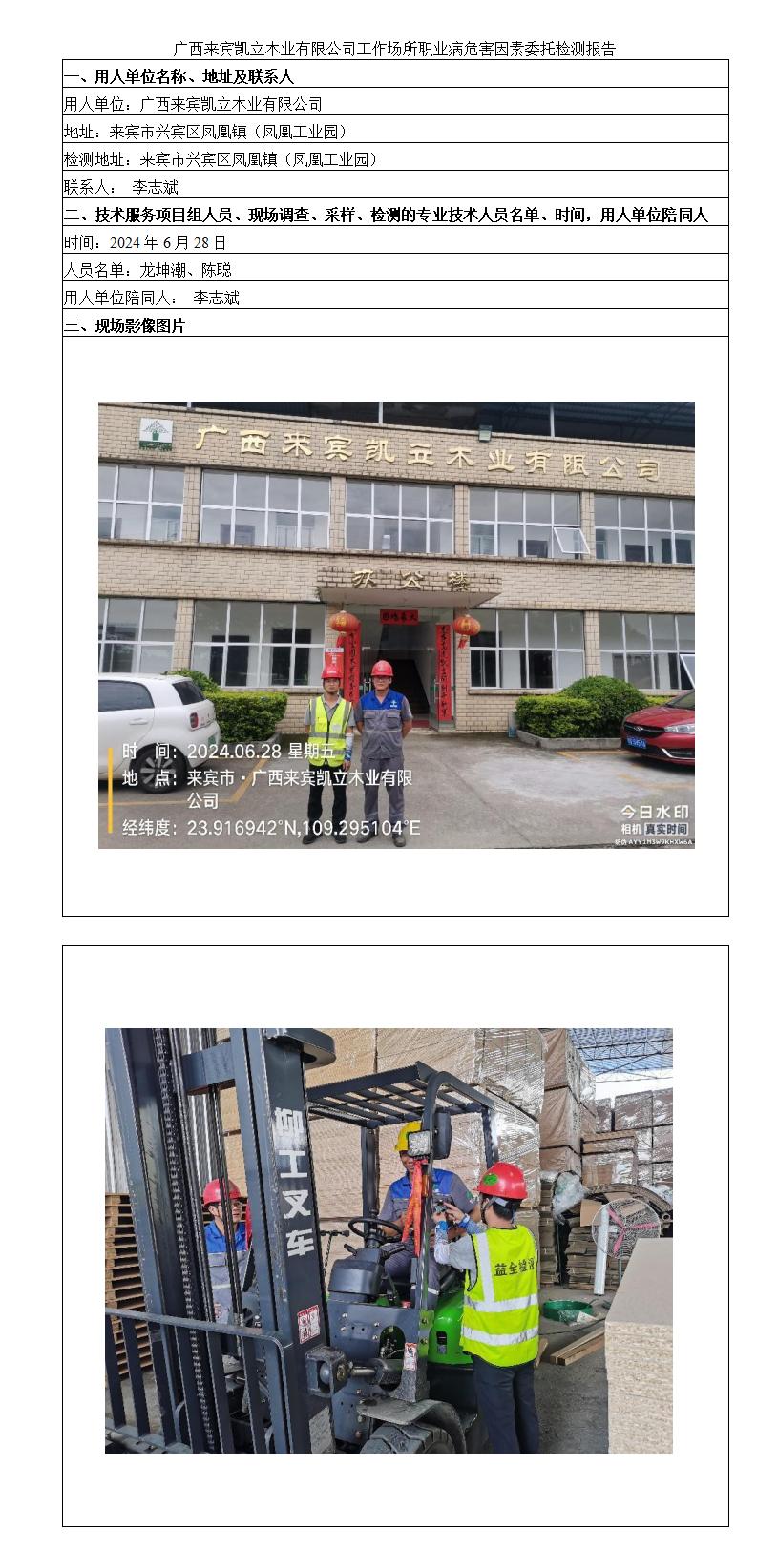 廣西來賓凱立木業(yè)有限公司工作場所職業(yè)病危害因素委托檢測報告