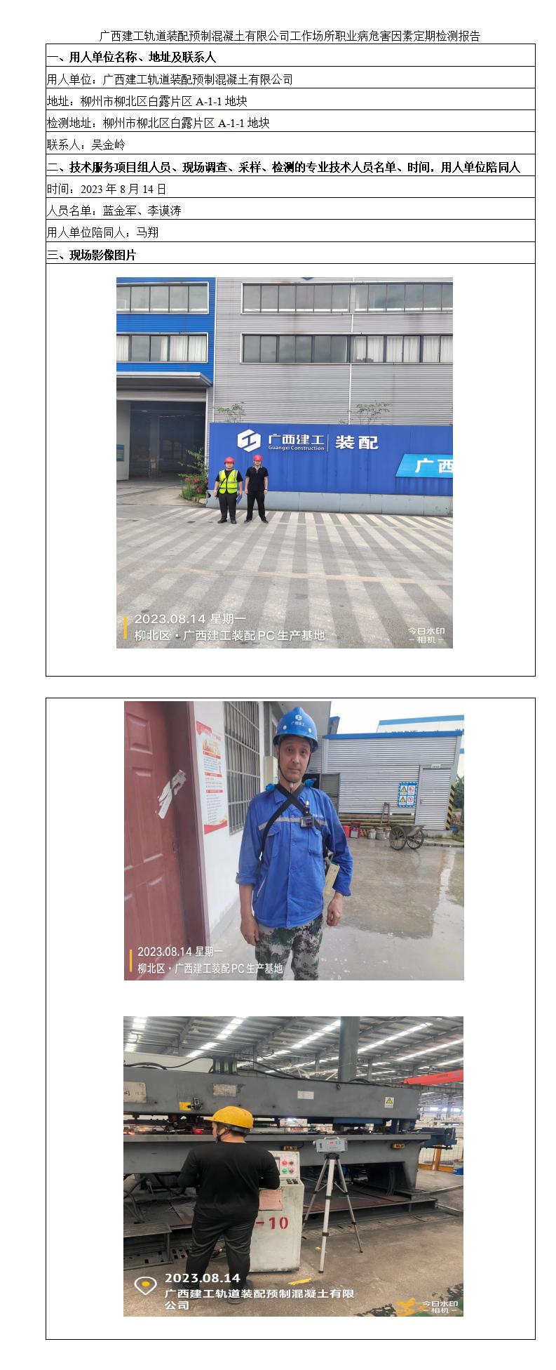 廣西建工軌道裝配預(yù)制混凝土有限公司工作場(chǎng)所職業(yè)病危害因素定期檢測(cè)報(bào)告