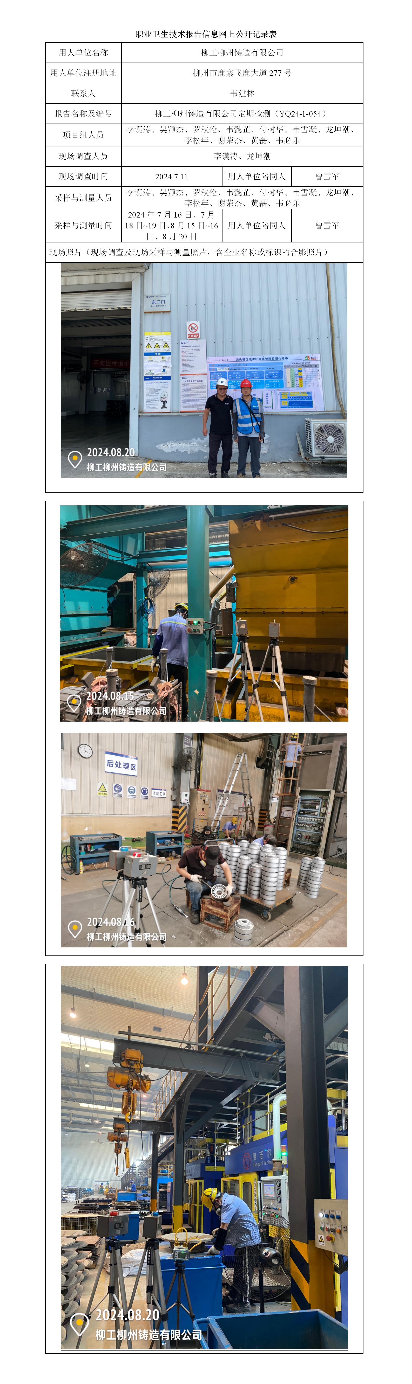 柳工柳州鑄造有限公司工作場所職業(yè)病危害因素定期檢測報告
