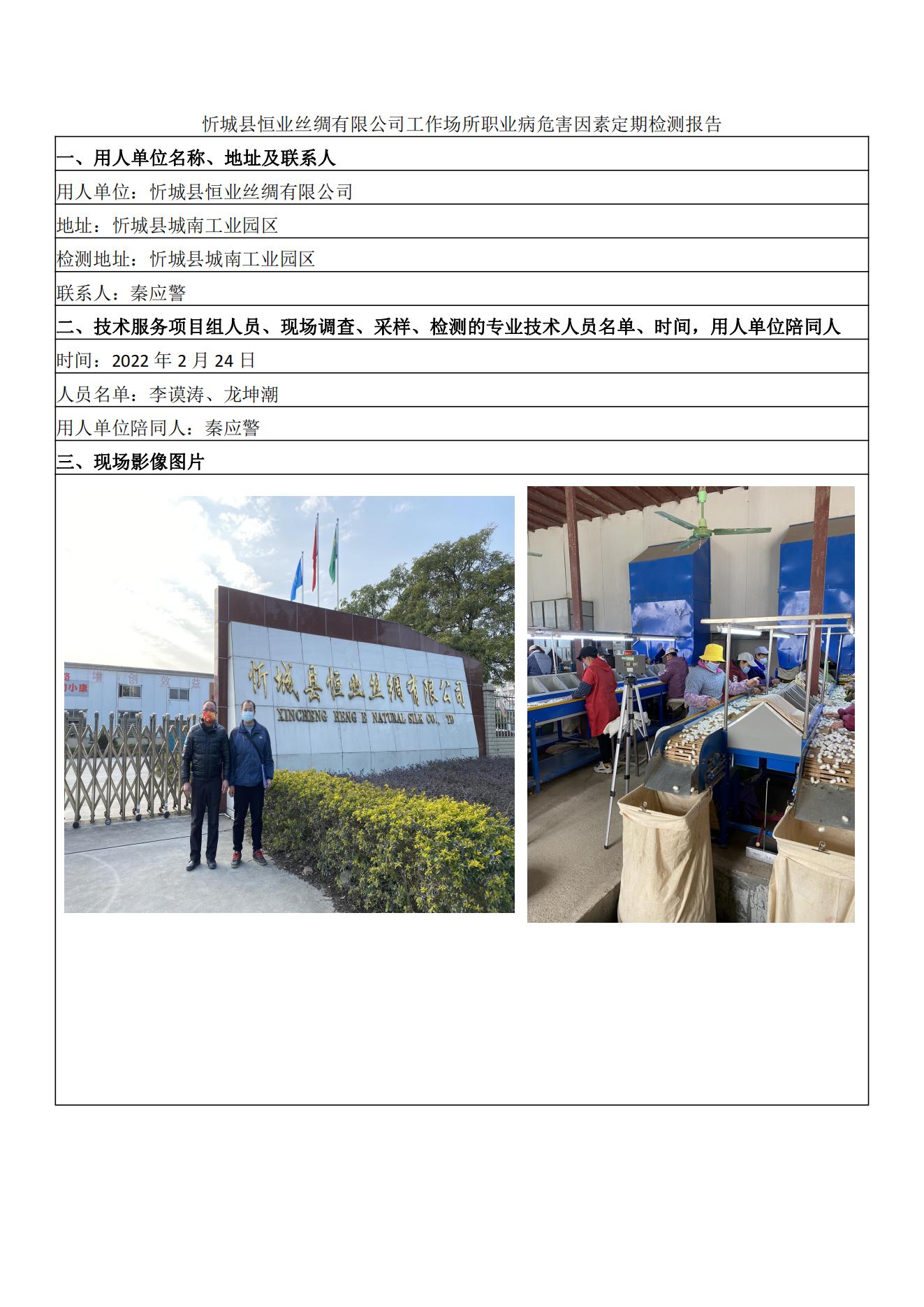 忻城縣恒業(yè)絲綢有限公司工作場所職業(yè)病危害因素定期檢測報告