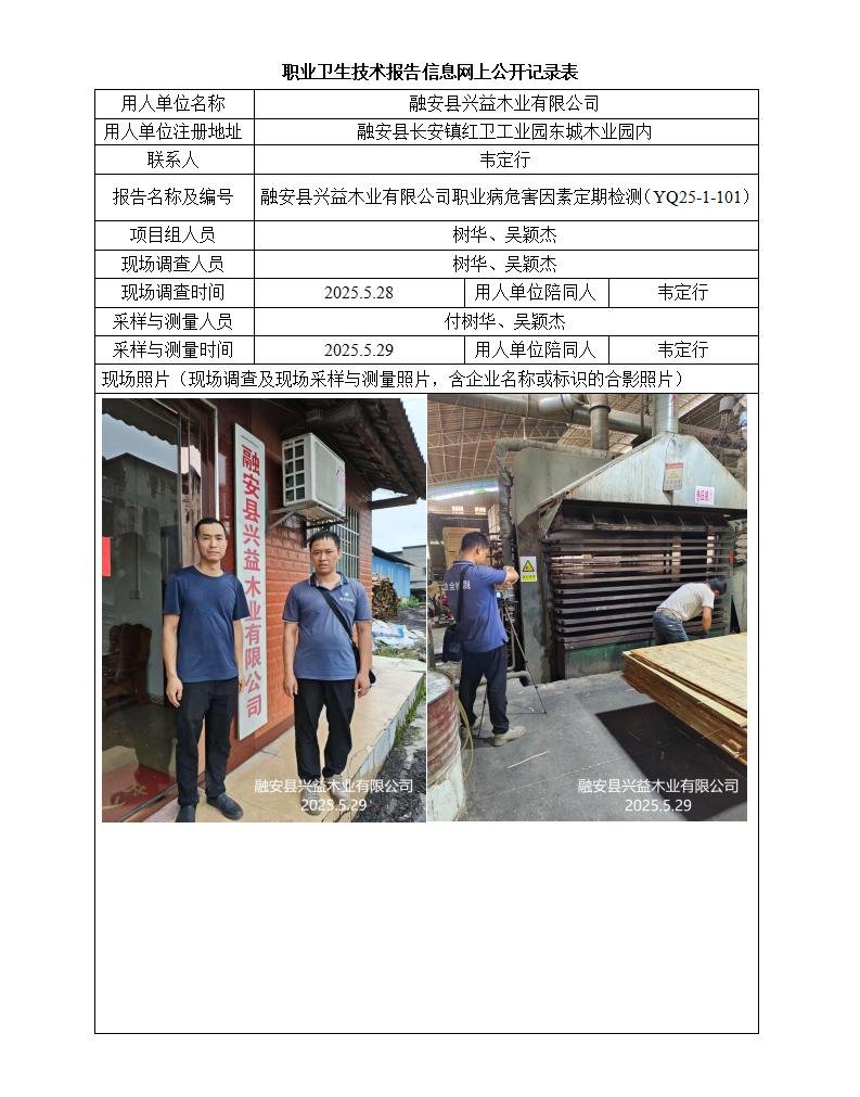 融安縣興益木業(yè)有限公司職業(yè)病危害因素定期檢測(cè)報(bào)告