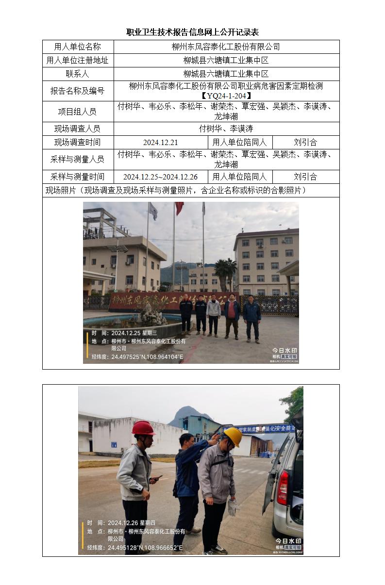 柳州東風容泰化工股份有限公司職業(yè)病危害因素定期檢測報告