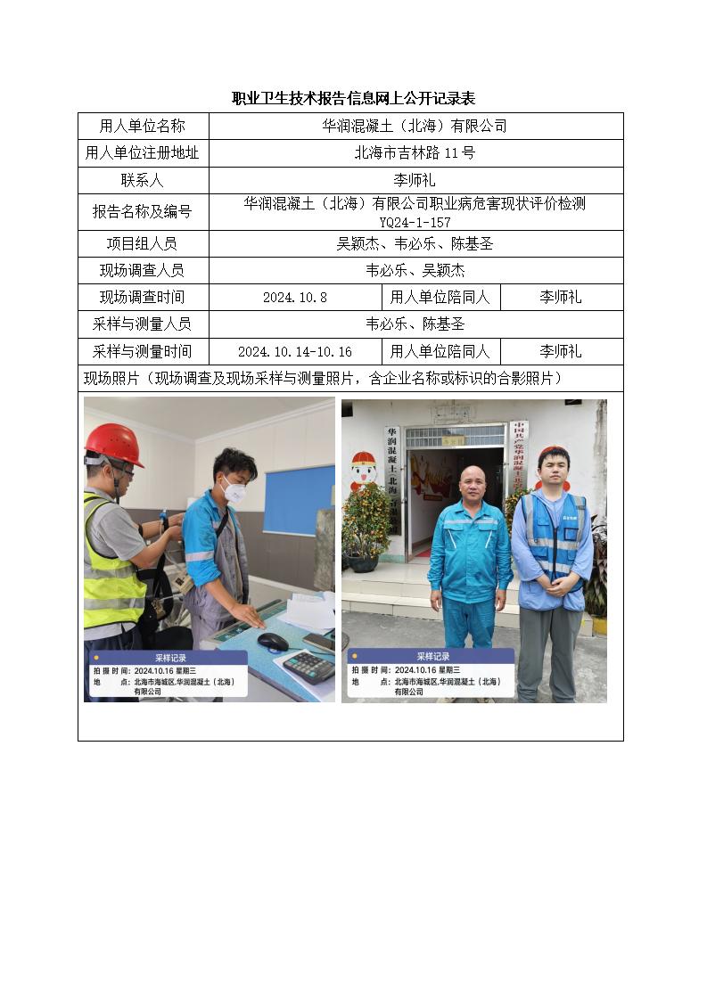 華潤混凝土(北海)有限公司職業(yè)病危害現(xiàn)狀評價(jià)檢測報(bào)告