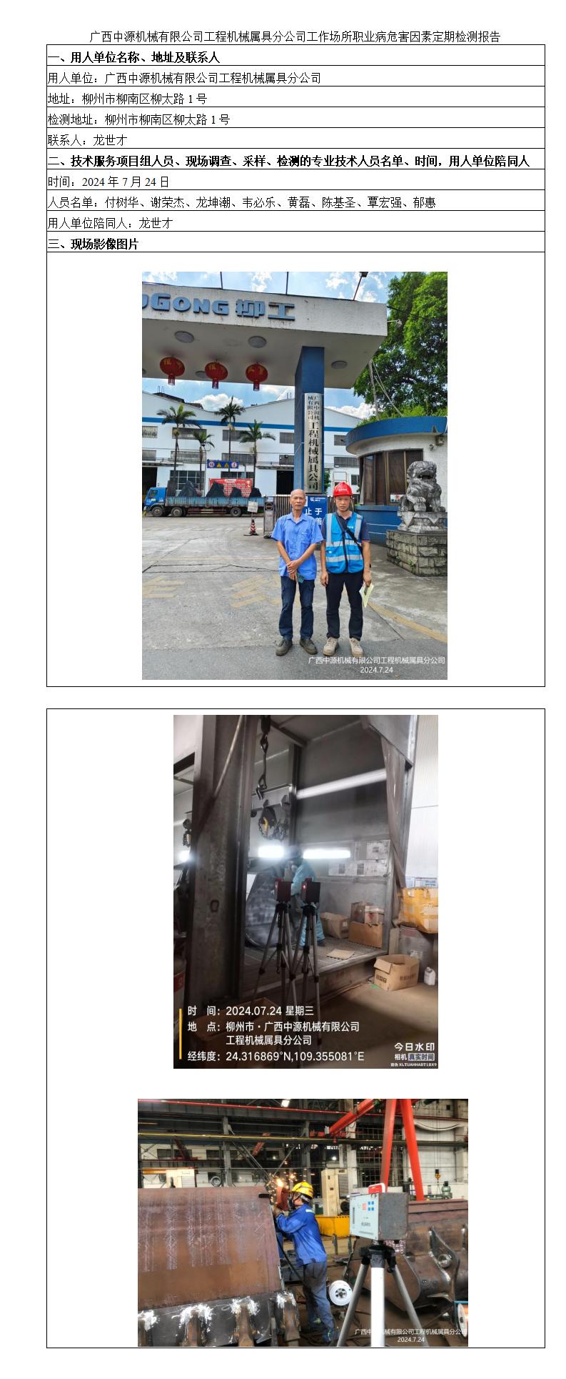 廣西中源機(jī)械有限公司工程機(jī)械屬具分公司工作場(chǎng)所職業(yè)病危害因素定期檢測(cè)報(bào)告