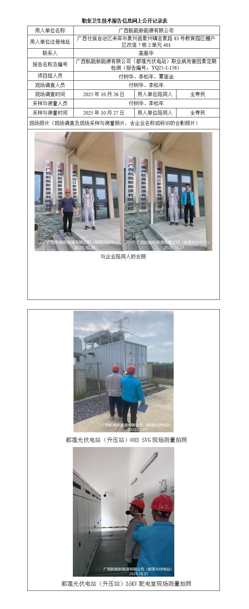 廣西航能新能源有限公司(都蓮光伏電站)職業(yè)病危害因素定期檢測