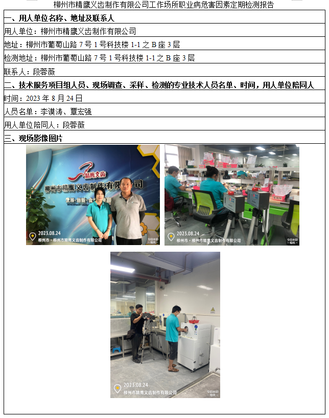 柳州市精鷹義齒制作有限公司工作場所職業(yè)病危害因素定期檢測報告