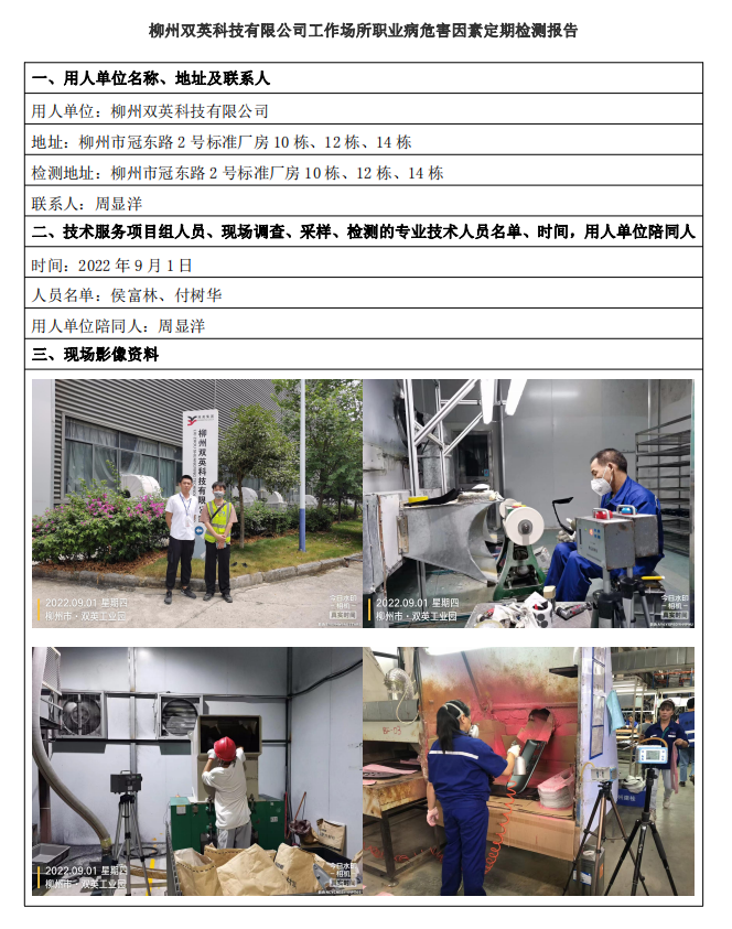 柳州雙英科技有限公司工作場所職業(yè)病危害因素定期檢測報告