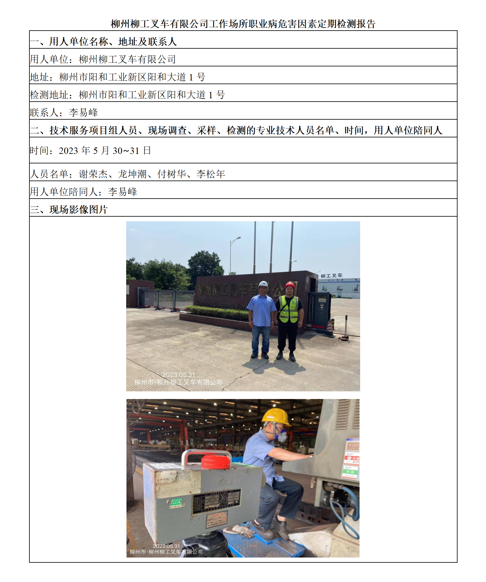 柳州柳工叉車有限公司定期檢測報(bào)告