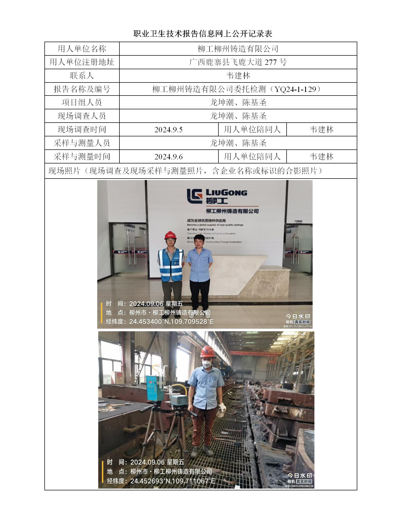 柳工柳州鑄造有限公司工作場(chǎng)所職業(yè)病危害因素委托檢測(cè)報(bào)告
