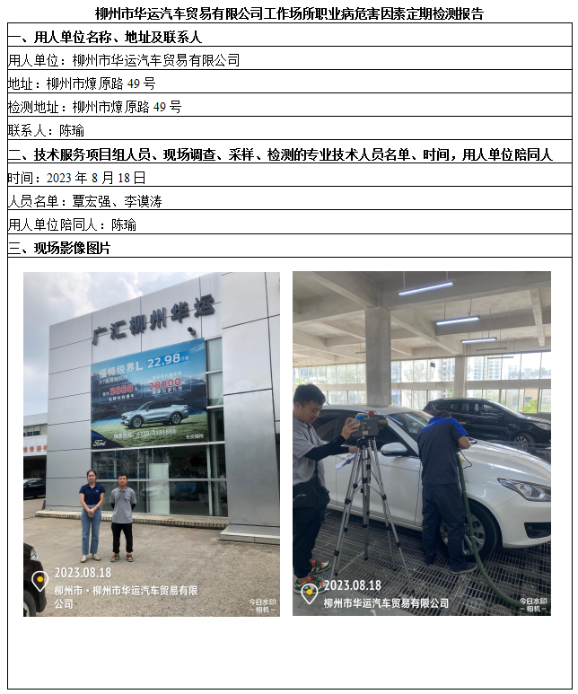 柳州市華運汽車貿(mào)易有限公司工作場所職業(yè)病危害因素定期檢測報告