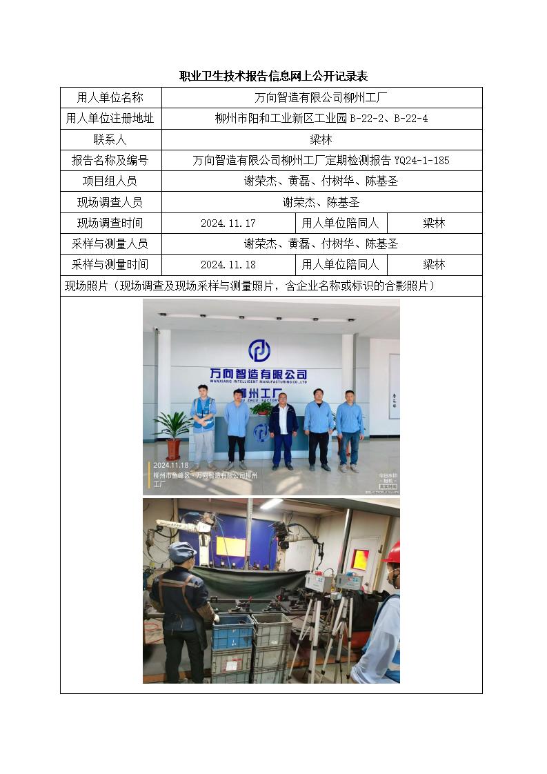 萬向智造有限公司柳州工廠定期檢測(cè)報(bào)告