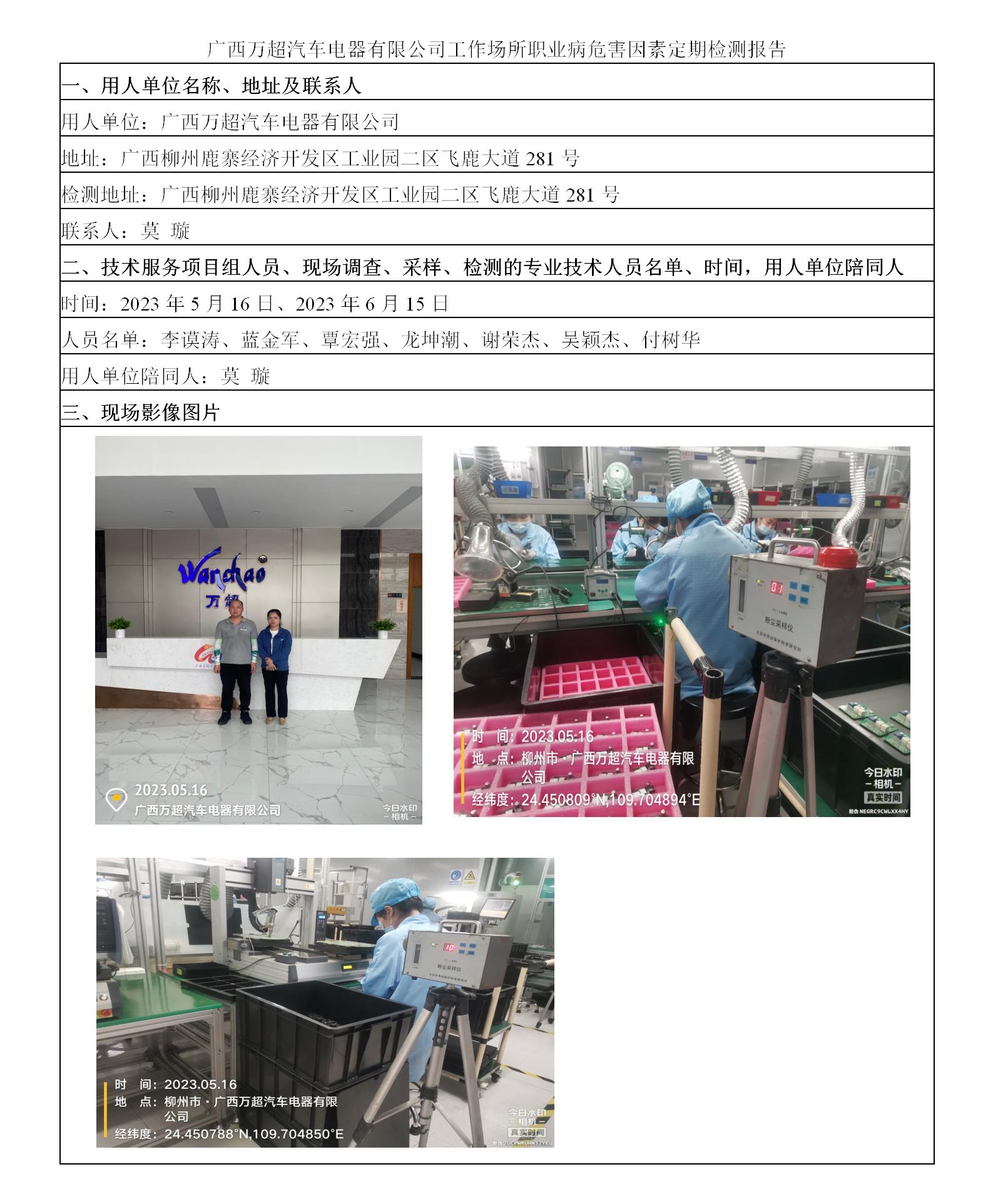 廣西萬超汽車電器有限公司工作場所職業(yè)病危害因素定期檢測報(bào)告