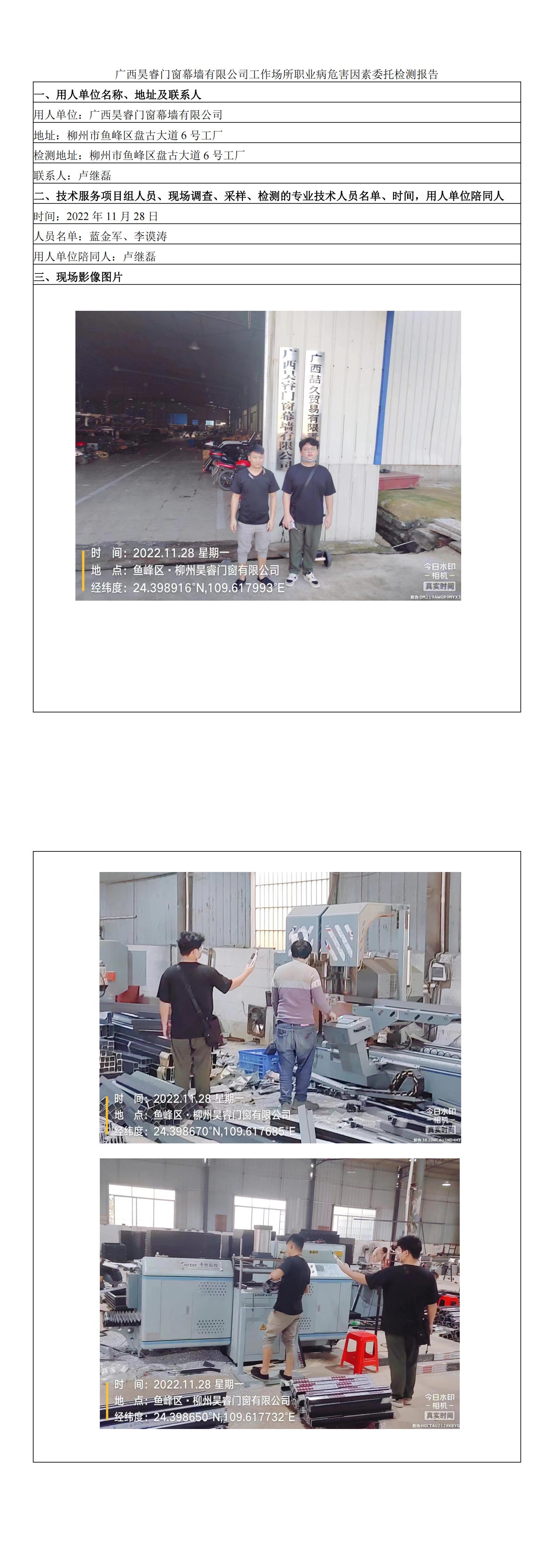 廣西昊睿門窗幕墻有限公司工作場(chǎng)所職業(yè)病危害因素委托檢測(cè)報(bào)告