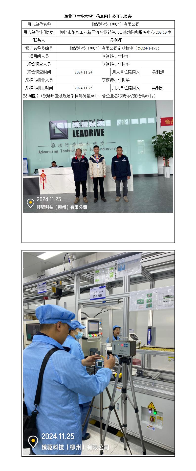 臻驅(qū)科技(柳州)有限公司工作場所職業(yè)病危害因素定期檢測報告