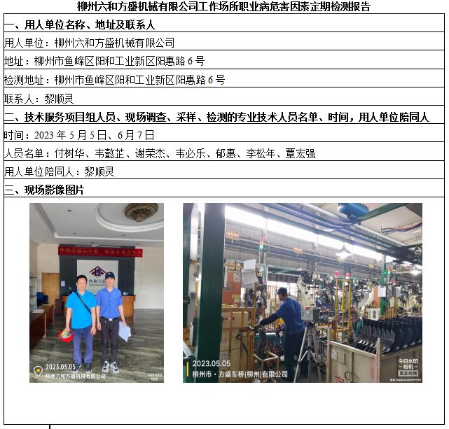 柳州六和方盛機(jī)械有限公司工作場(chǎng)所職業(yè)病危害因素定期檢測(cè)報(bào)告
