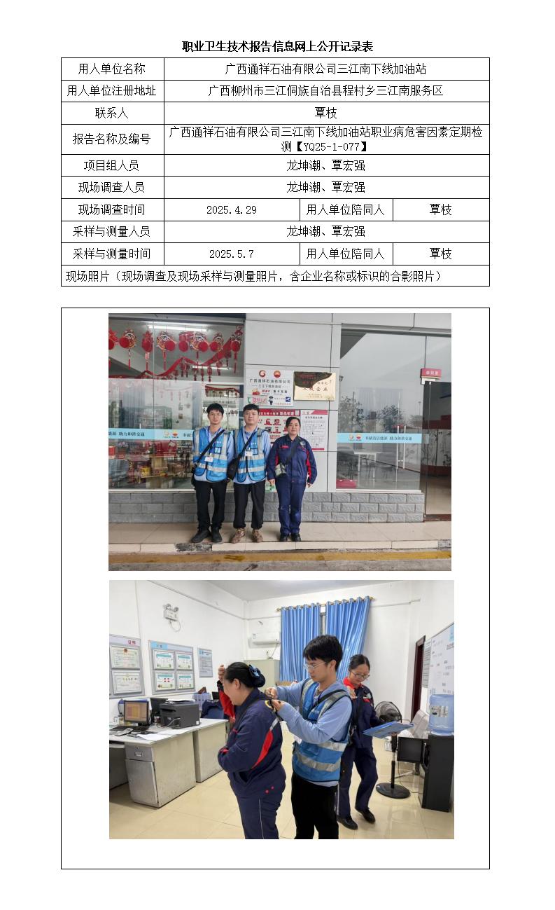 廣西通祥石油有限公司三江南下線加油站職業(yè)病危害因素定期檢測報告