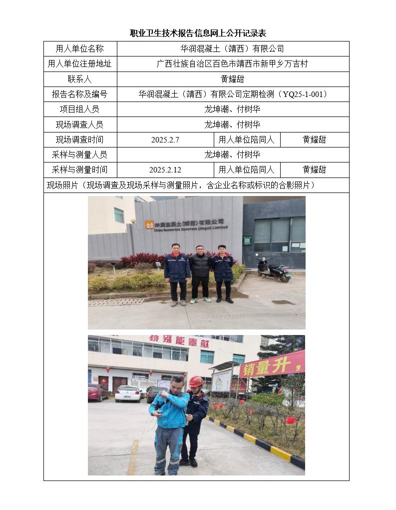 華潤混凝土(靖西)有限公司工作場所職業(yè)病危害因素定期檢測報告