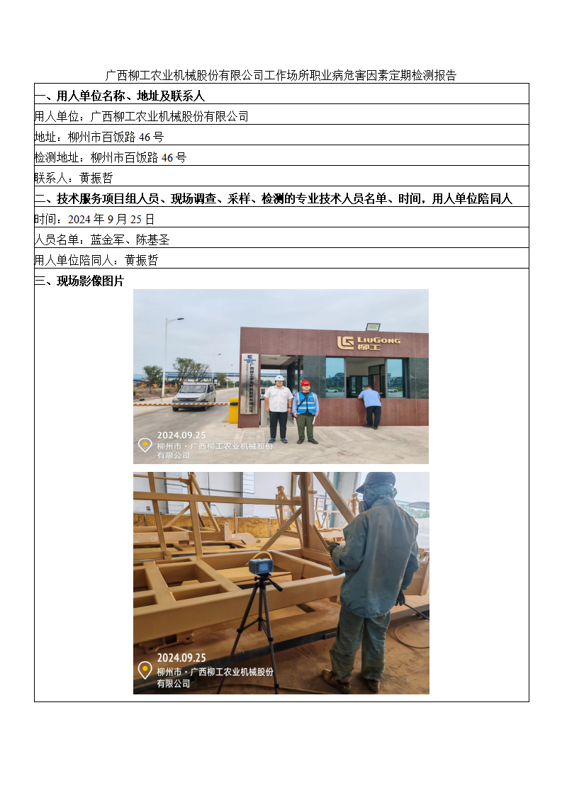 廣西柳工農(nóng)業(yè)機(jī)械股份有限公司工作場(chǎng)所職業(yè)病危害因素定期檢測(cè)報(bào)告