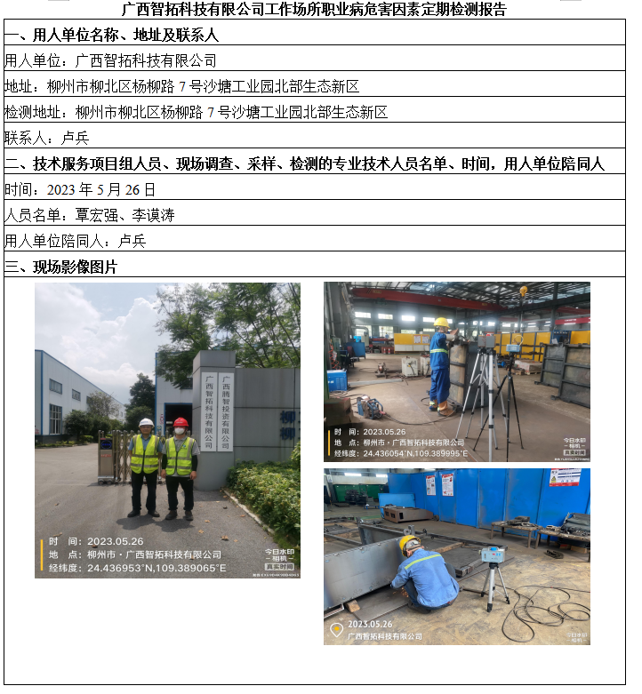 廣西智拓科技有限公司工作場(chǎng)所職業(yè)病危害因素定期檢測(cè)報(bào)告