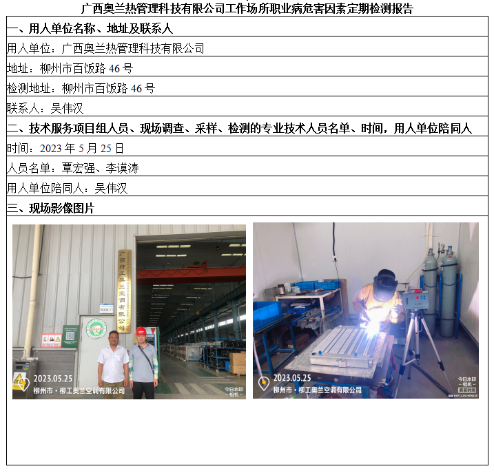 廣西奧蘭熱管理科技有限公司工作場(chǎng)所職業(yè)病危害因素定期檢測(cè)報(bào)告