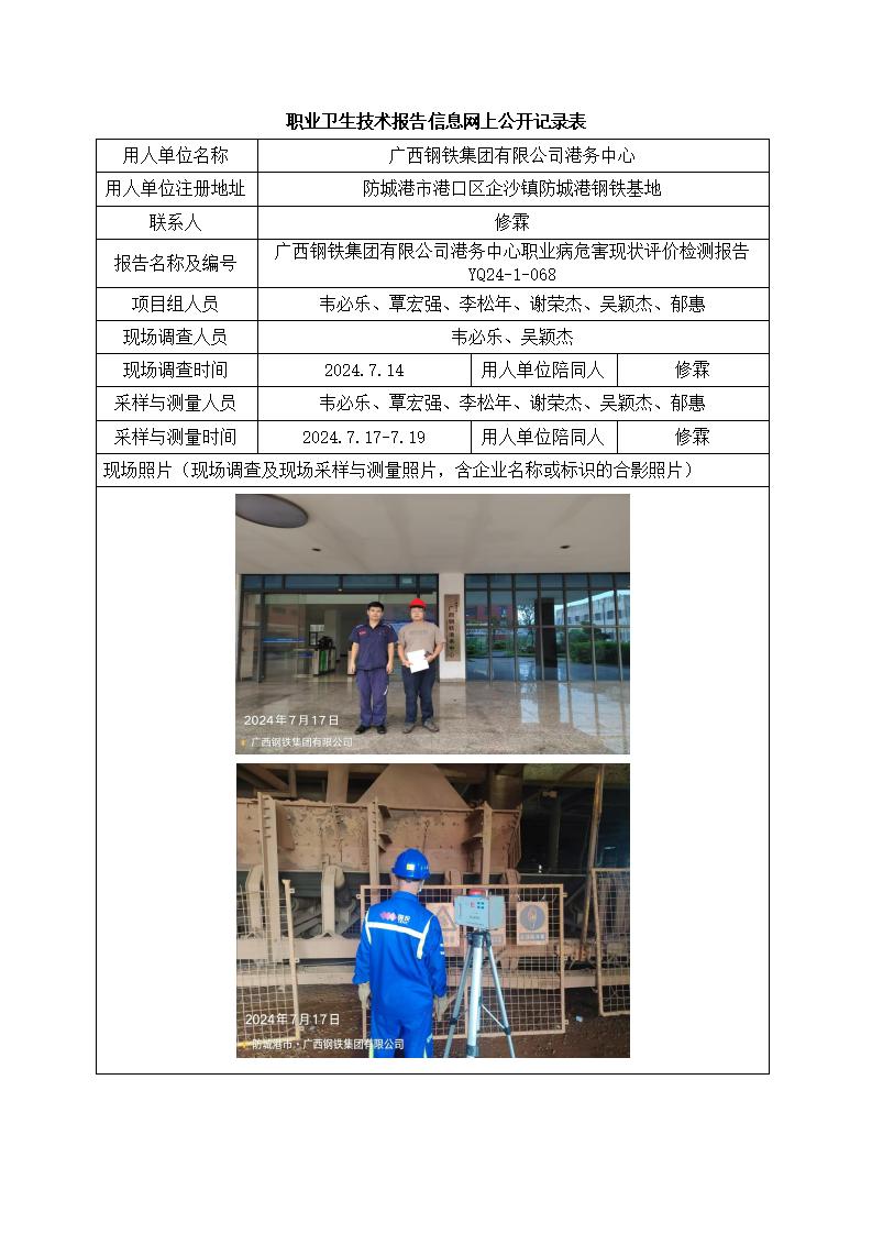 廣西鋼鐵集團有限公司港務中心職業(yè)病危害現(xiàn)狀評價檢測