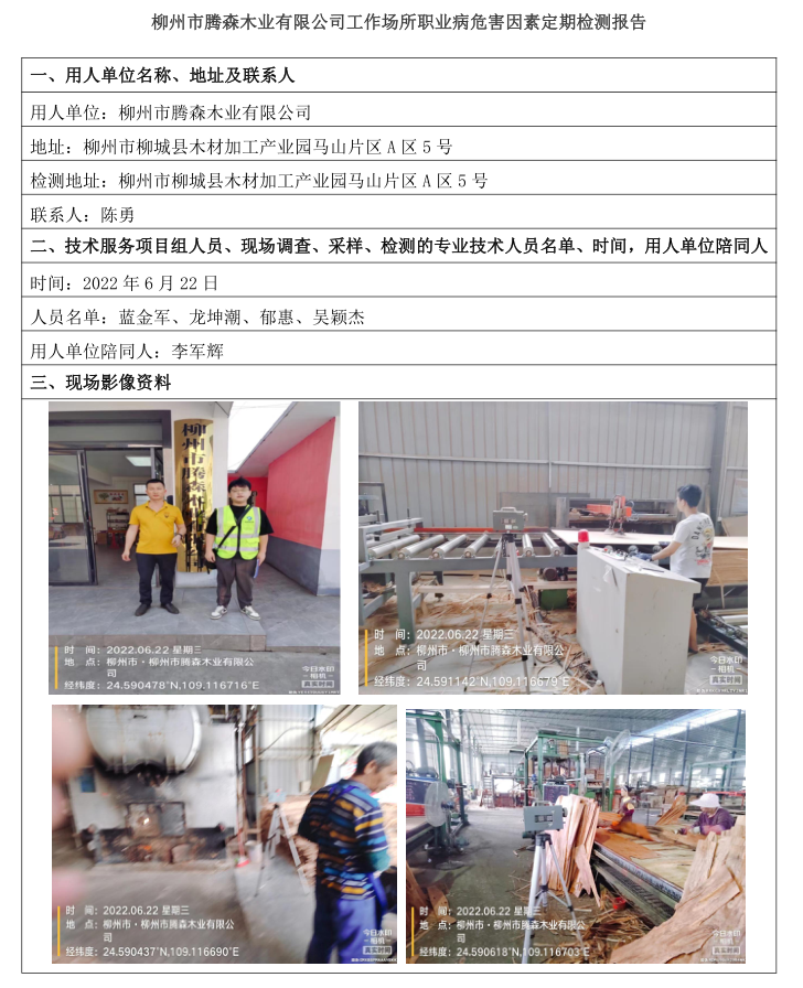 柳州市騰森木業(yè)有限公司工作場所職業(yè)病危害因素定期檢測報告