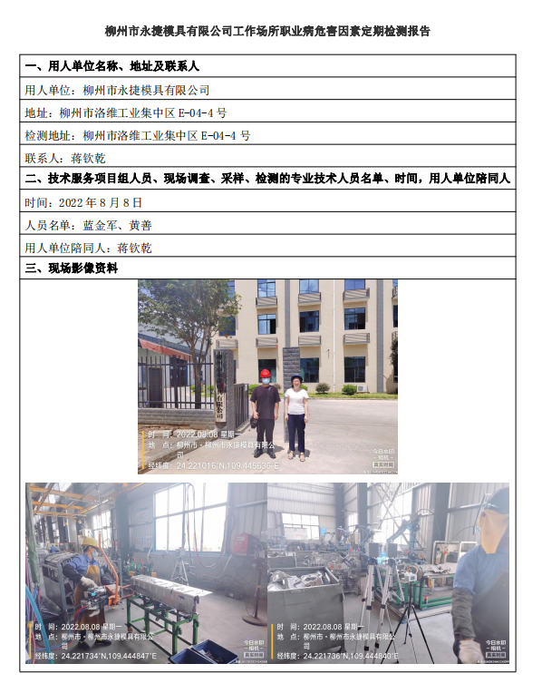 柳州市永捷模具有限公司工作場(chǎng)所職業(yè)病危害因素定期檢測(cè)報(bào)告