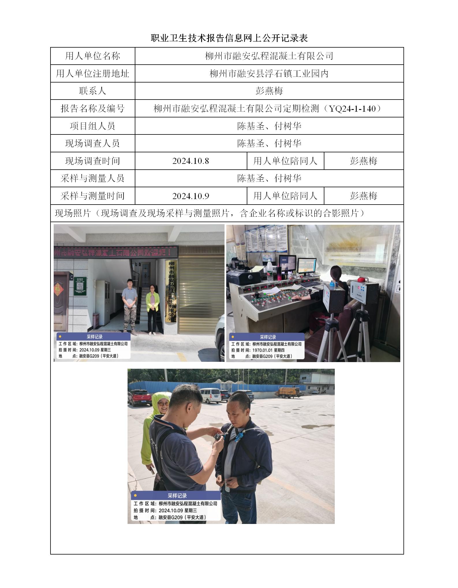 柳州市融安弘程混凝土有限公司工作場所職業(yè)病危害因素定期檢測報告