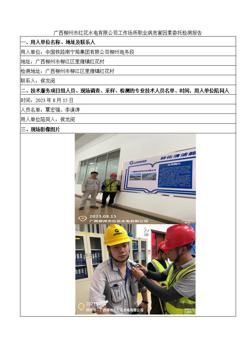 廣西柳州市紅花水電有限公司工作場所職業(yè)病危害因素委托檢測報告