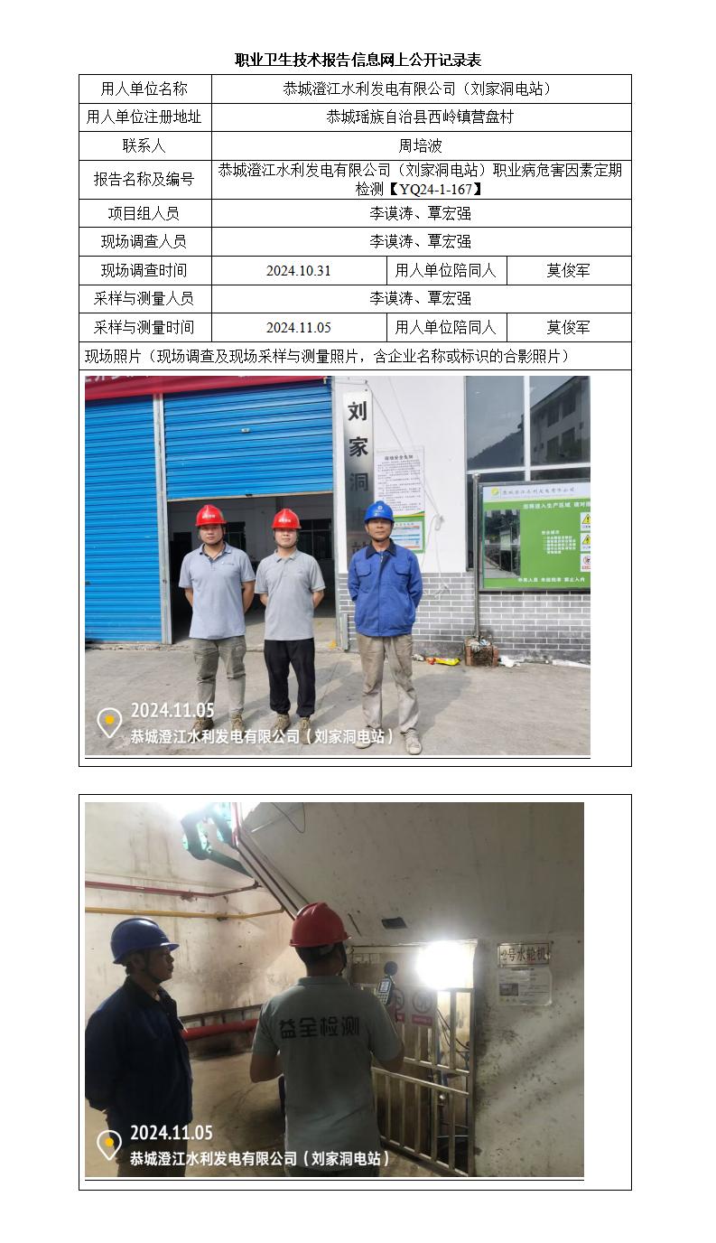 恭城澄江水利發(fā)電有限公司(劉家洞電站)職業(yè)病危害因素定期檢測報(bào)告