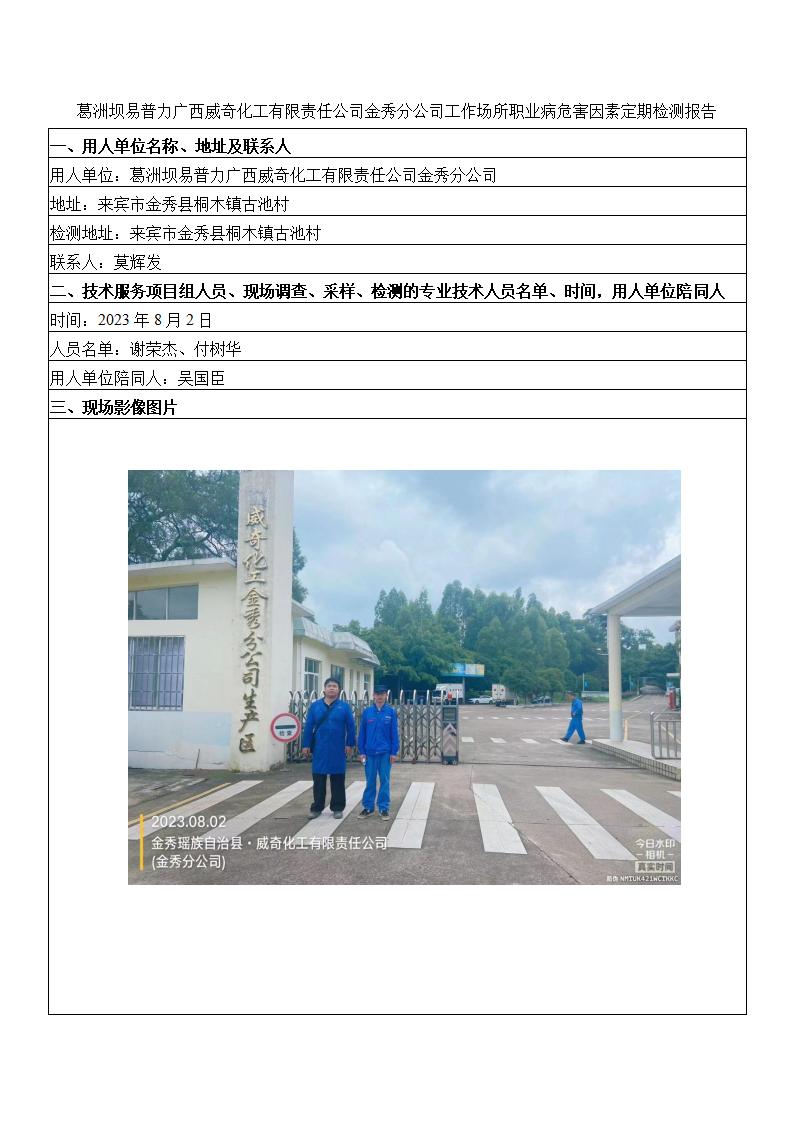 葛洲壩易普力廣西威奇化工有限責(zé)任公司金秀分公司工作場所職業(yè)病危害因素定期檢測報告