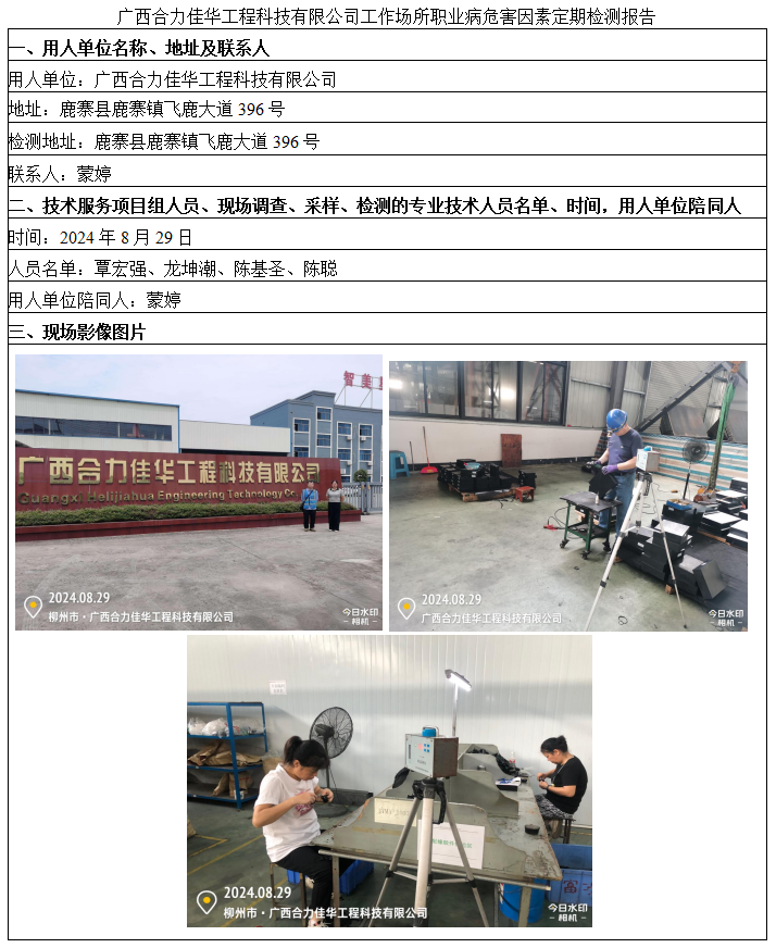 廣西合力佳華工程科技有限公司工作場所職業(yè)病危害因素定期檢測報(bào)告