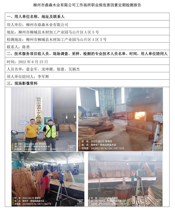柳州市鼎森木業(yè)有限公司工作場所職業(yè)病危害因素定期檢測報告