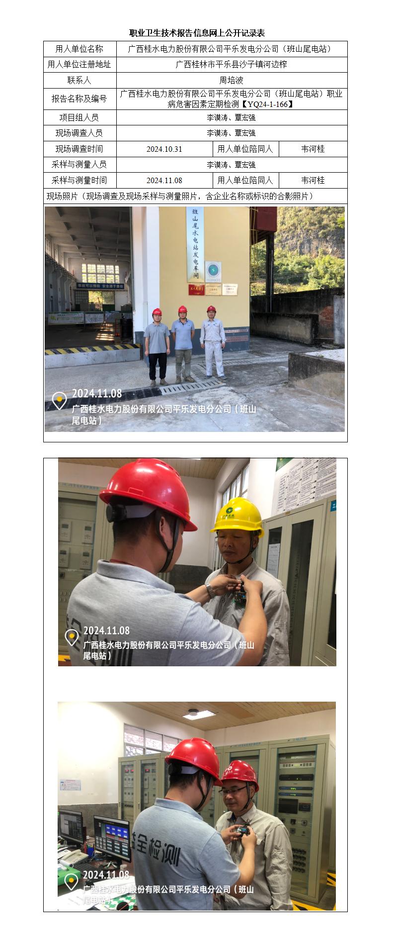 廣西桂水電力股份有限公司平樂發(fā)電分公司(班山尾電站)職業(yè)病危害因素定期檢測報告