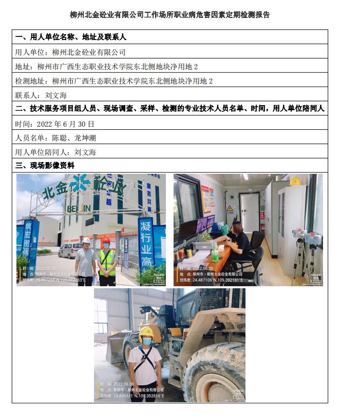 柳州北金砼業(yè)有限公司工作場(chǎng)所職業(yè)病危害因素定期檢測(cè)報(bào)告