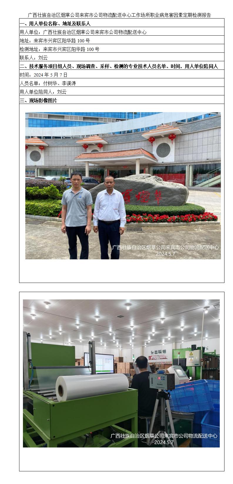 廣西壯族自治區(qū)煙草公司來(lái)賓市公司物流配送中心工作場(chǎng)所職業(yè)病危害因素定期檢測(cè)報(bào)告
