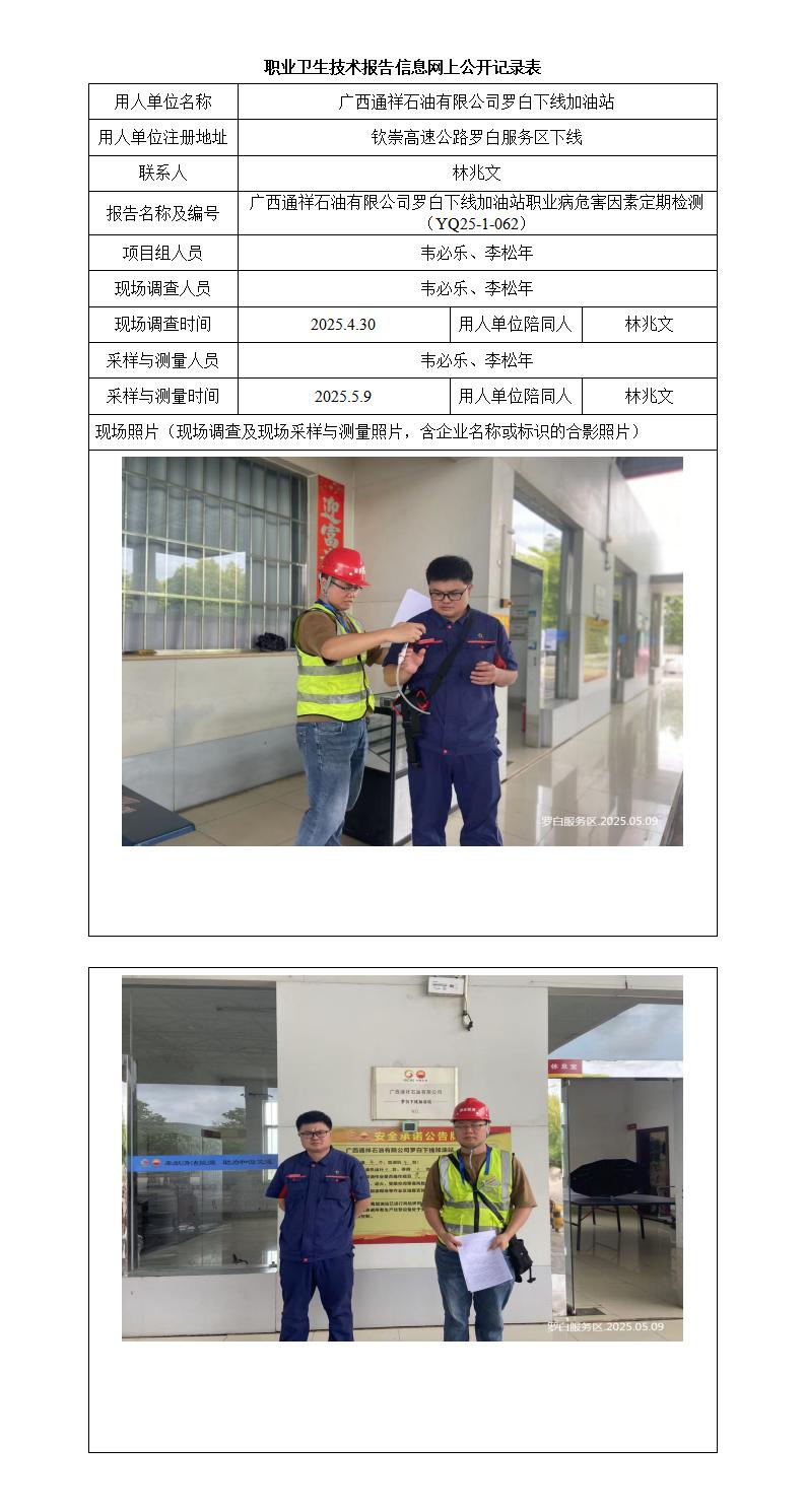廣西通祥石油有限公司羅白下線加油站職業(yè)病危害因素定期檢測