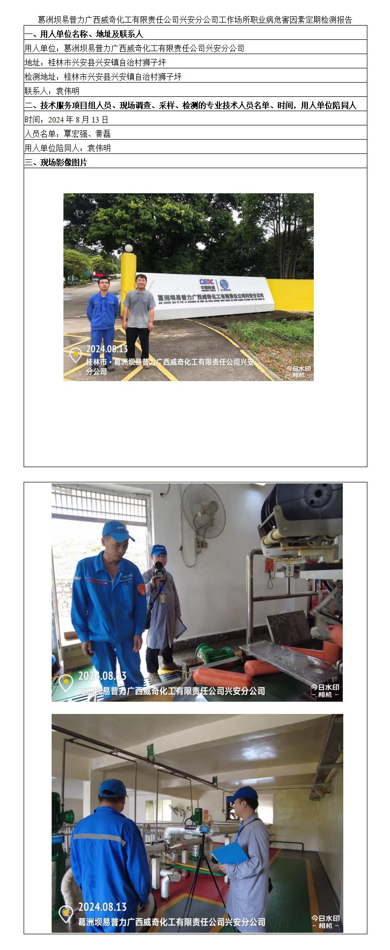 葛洲壩易普力廣西威奇化工有限責(zé)任公司興安分公司工作場所職業(yè)病危害因素定期檢測報告