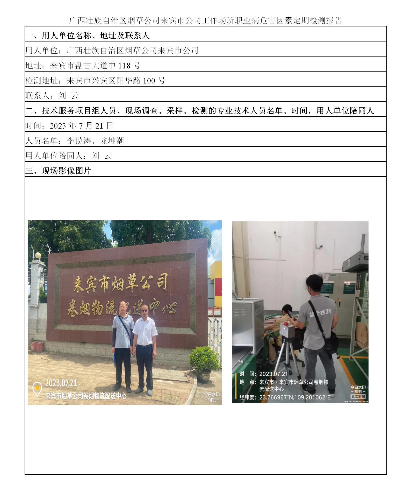 廣西壯族自治區(qū)煙草公司來賓市公司工作場所職業(yè)病危害因素定期檢測報告