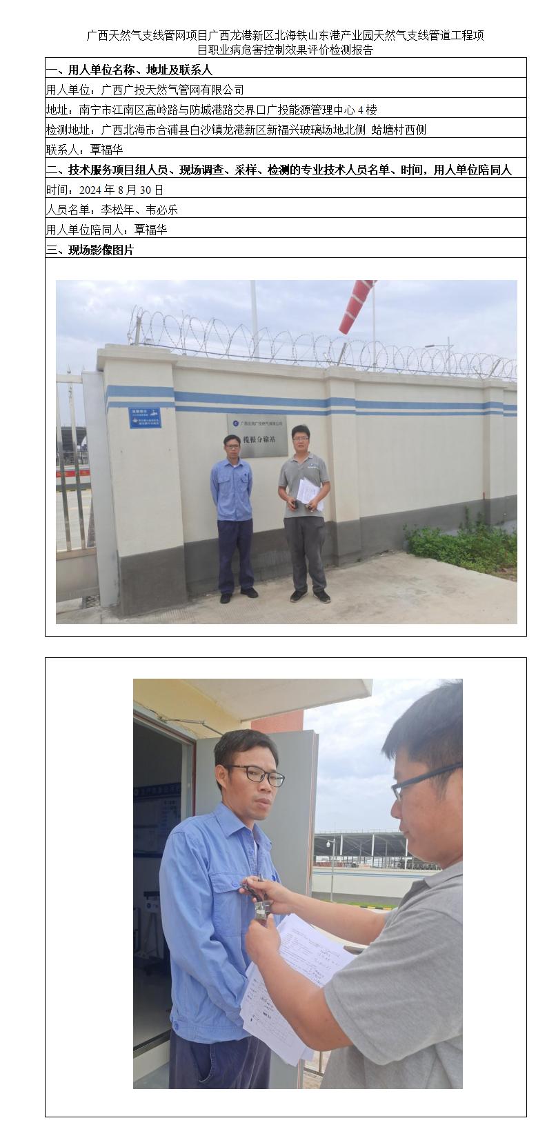 廣西天然氣支線管網(wǎng)項目廣西龍港新區(qū)北海鐵山東港產(chǎn)業(yè)園天然氣支線管道工程項目職業(yè)病危害控制效果評價檢測報告