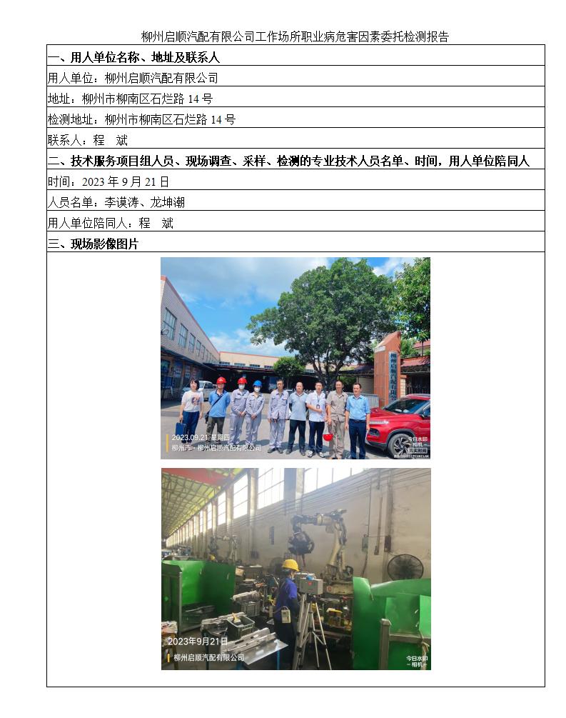 柳州啟順汽配有限公司工作場所職業(yè)病危害因素委托檢測報(bào)告