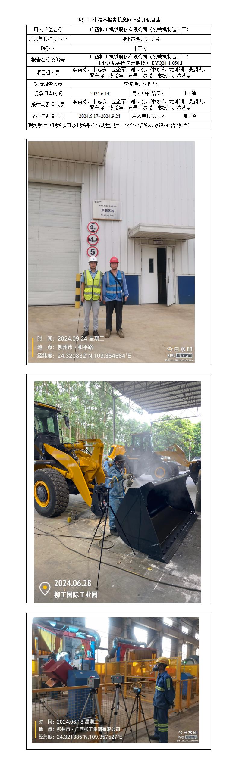 廣西柳工機(jī)械股份有限公司(裝載機(jī)制造工廠) 職業(yè)病危害因素定期檢測(cè)報(bào)告