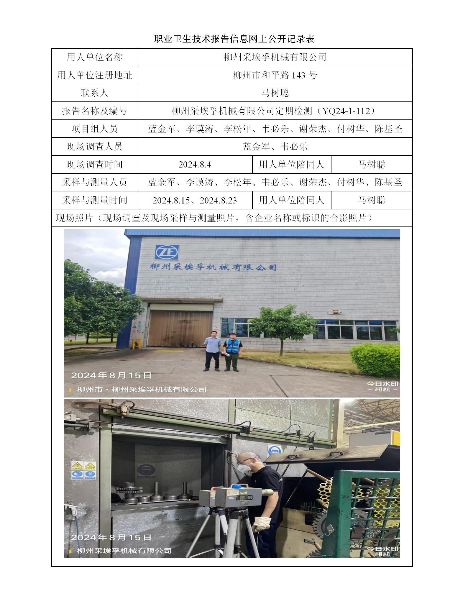 柳州采埃孚機(jī)械有限公司 工作場所職業(yè)病危害因素定期檢測報(bào)告
