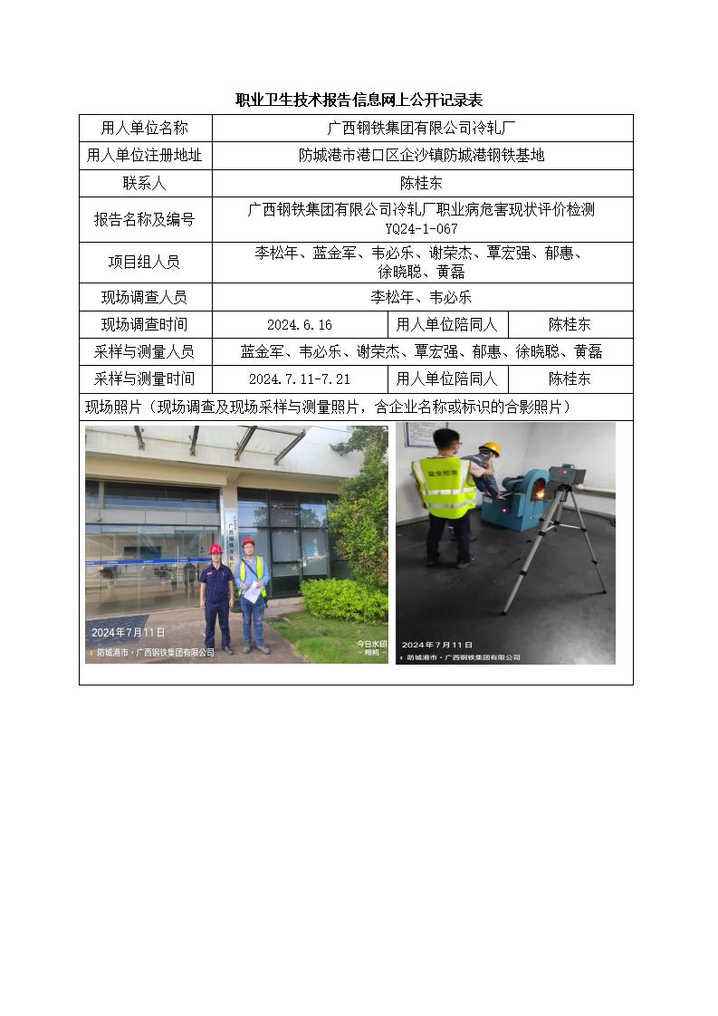 廣西鋼鐵集團(tuán)有限公司冷軋廠職業(yè)病危害現(xiàn)狀評(píng)價(jià)檢測(cè)