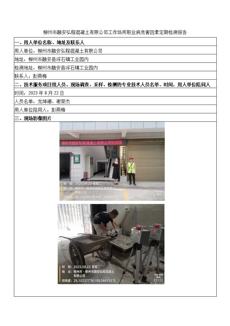 柳州市融安弘程混凝土有限公司工作場所職業(yè)病危害因素定期檢測報告