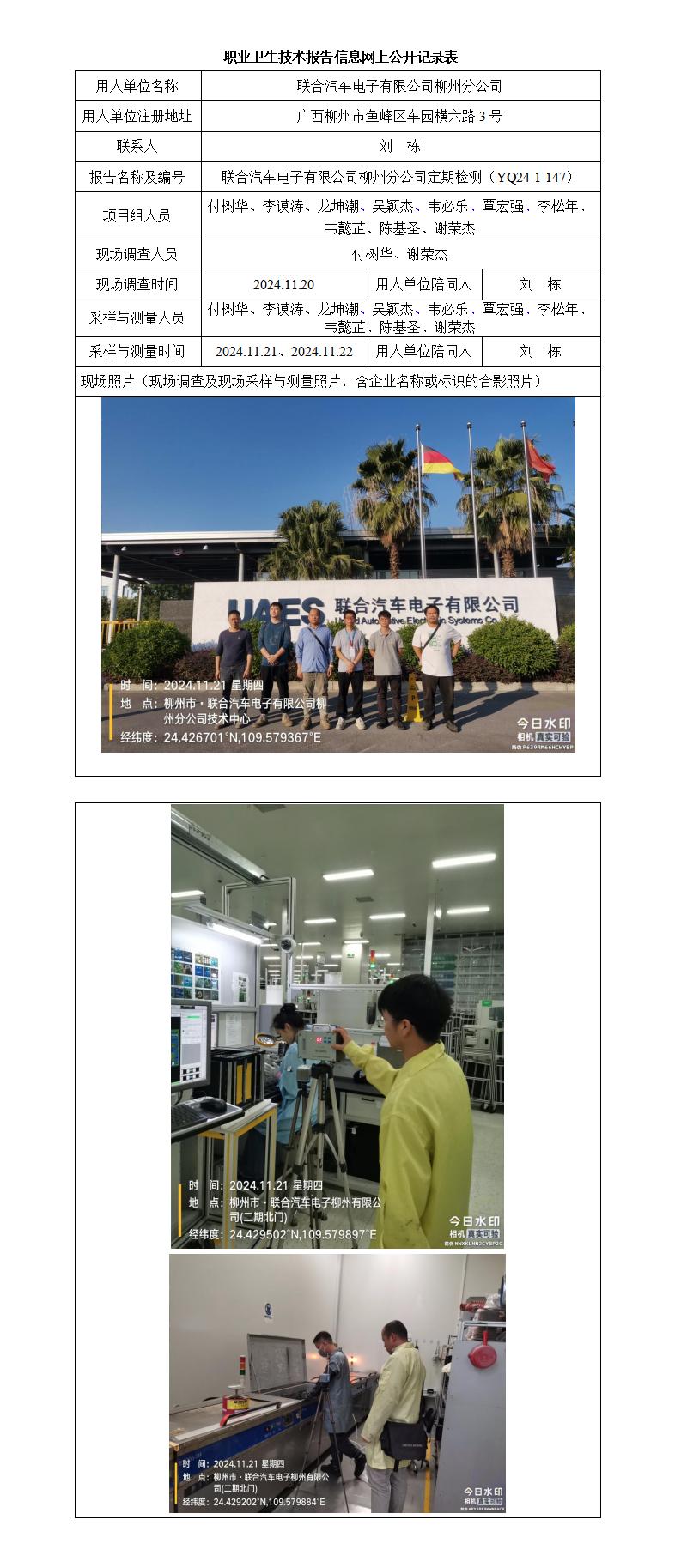 聯(lián)合汽車電子有限公司柳州分公司職業(yè)病危害因素定期檢測(cè)報(bào)告