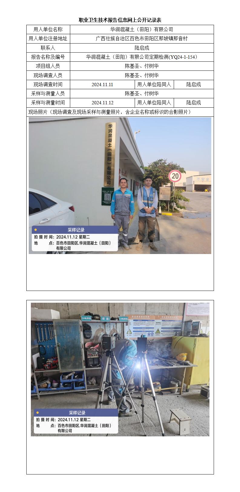 華潤混凝土(田陽)有限公司工作場所職業(yè)病危害因素定期檢測報告