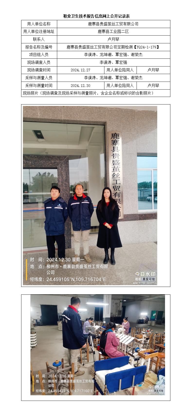 鹿寨縣貴盛繭絲工貿(mào)有限公司 職業(yè)病危害因素定期檢測報告