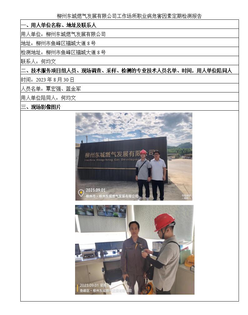 柳州東城燃?xì)獍l(fā)展有限公司工作場所職業(yè)病危害因素定期檢測報(bào)告